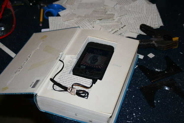 Esta parte del proyecto es la más fácil. Todo lo que necesitas hacer es rastrear su reproductor iPod/MP3 y empiece a cortar. Ahora si usted sabe cómo cortar un agujero para el iPod, luego saltar hacia adelante, pero si no está seguro acerca de corte en la parte frontal del libro, seguir leyendo.