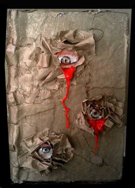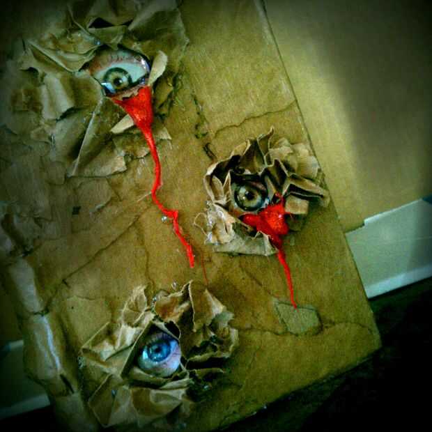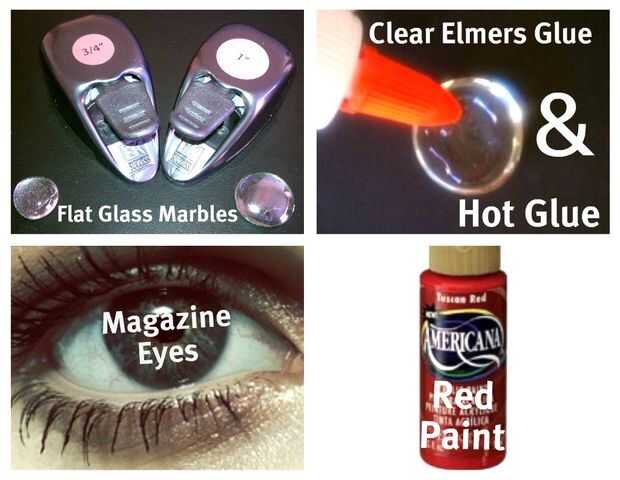 Para crear las lágrimas sangrientas, goteo capas de pegamento caliente (golpe a que se enfríen entre capas)