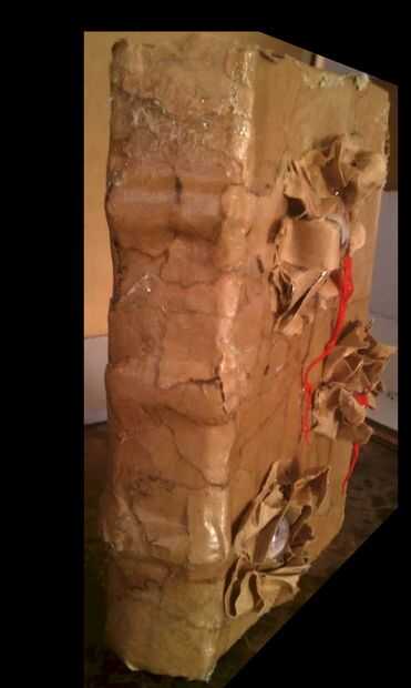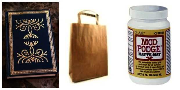 Utilizando el Mod Podge, cubrir el libro con la bolsa de papel arrugada