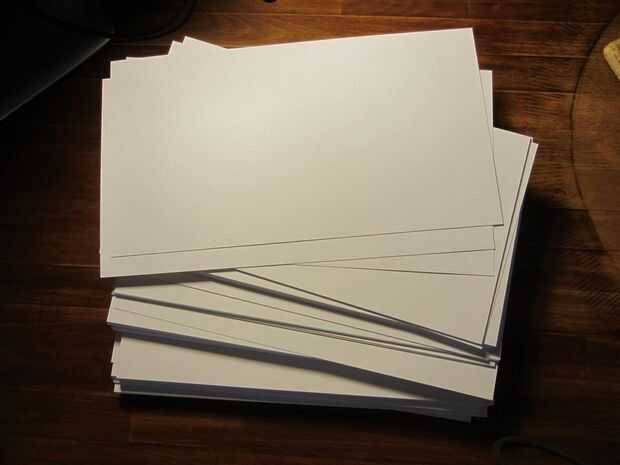 Cartulina en blanco suelto, aproximadamente 7 "x 12". Me ha pasado que tienen un exceso de este colgante alrededor de tamaño mi libro según la acción, pero por supuesto puede usar cualquier tamaño/valores que se sienten es apropiado y se imprime bien. Personalmente prefiero las hojas más gruesas como realmente añade cierta sofisticación al producto final, y creo que agrega valor al espectador.