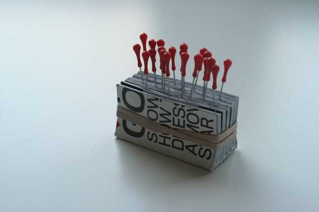 Almacenar algunas cosillas. Alfileres, agujas, clips de papel, push pins, memos, tarjetas de visita, selecciones de la guitarra... etc, etc.