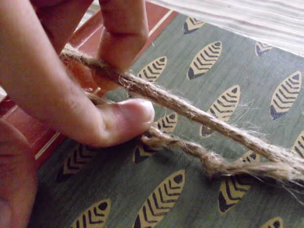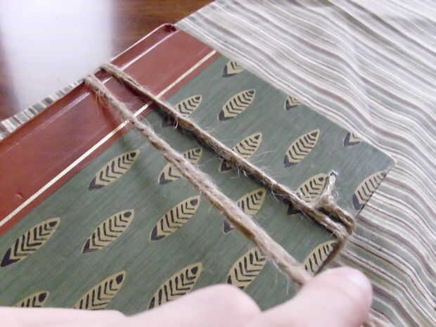 Abrir una página, insertar tu flor o planta material de elección, a continuación, cerrar el libro. Enrolle las cuerdas alrededor del libro varias veces (tercera foto), a continuación, deslice el extremo de la cadena bajo la envoltura que sólo trabajo hecho (cuarta foto). Tire del extremo de trabajo bien, esto hace que las cuerdas constrict el libro juntos, presionando la flor plana. Repita por ambos lados. ¡ Y listo! Espero que les haya gustado el ' ible y me alegro de estar compartiendo mi amor de prensado de la flor!
