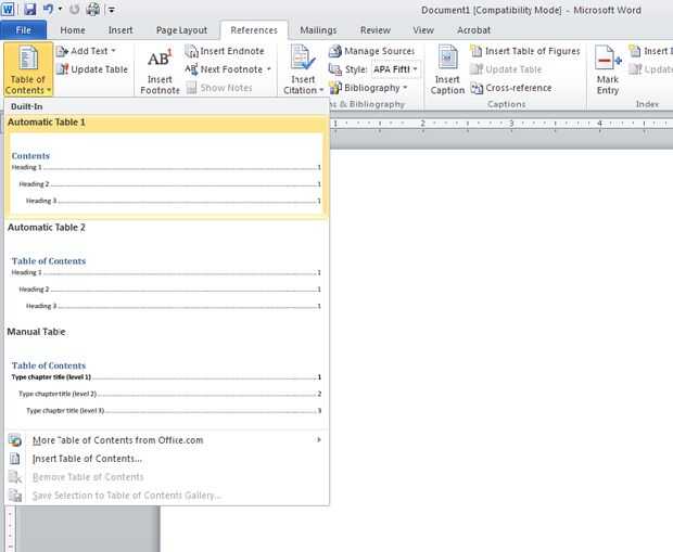 Abrir Word, vaya a la pestaña referencias, haga clic en tabla de contenido y elija su favorito.