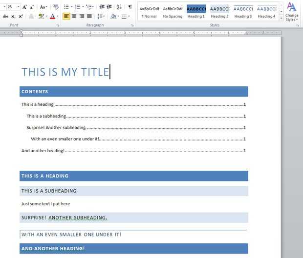 ¡ Hey presto! Lo que usted escribió como su rumbo poblada automáticamente a la tabla de contenido.