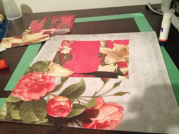 reúna los suministros:4 "x 4" cartulina - al menos 100lb2 pañuelos vintage - preferiblemente con bordadoPlantilla de sobres1 hoja, 8.5 "x 11 papel velomedio matecepillo de la esponjaesquina redondapistola de pegamento calienteHierro calient