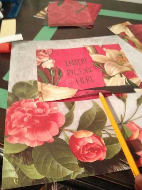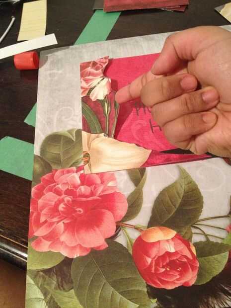 reúna los suministros:4 "x 4" cartulina - al menos 100lb2 pañuelos vintage - preferiblemente con bordadoPlantilla de sobres1 hoja, 8.5 "x 11 papel velomedio matecepillo de la esponjaesquina redondapistola de pegamento calienteHierro calient