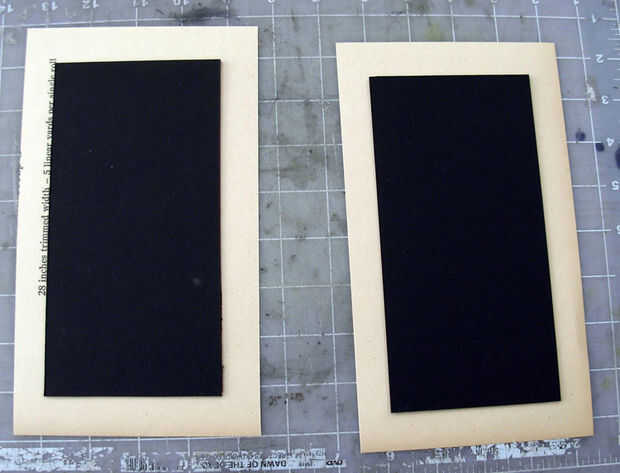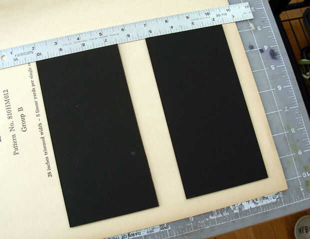 Coloque la cara de papel decorativo sobre la superficie de trabajo. Coloque las piezas de la caja como se muestra en la imagen. Asegúrese de dejar 1/2" entre las piezas y el borde del papel (cuadro 1). Cortar dos piezas de papel decorativo basado en las instrucciones (cuadro 2).