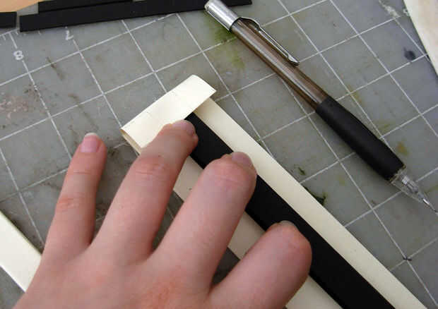 Con su cuchillo, cortar a lo largo de las marcas hace con el lápiz. Coloque al espaciador en el papel y traza donde debe ser colocado (cuadro 2). Esto hará que el lugar y cubriendo al espaciador más fácil.
