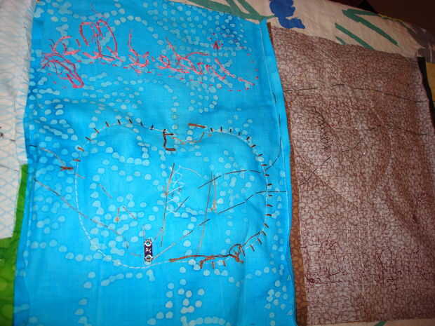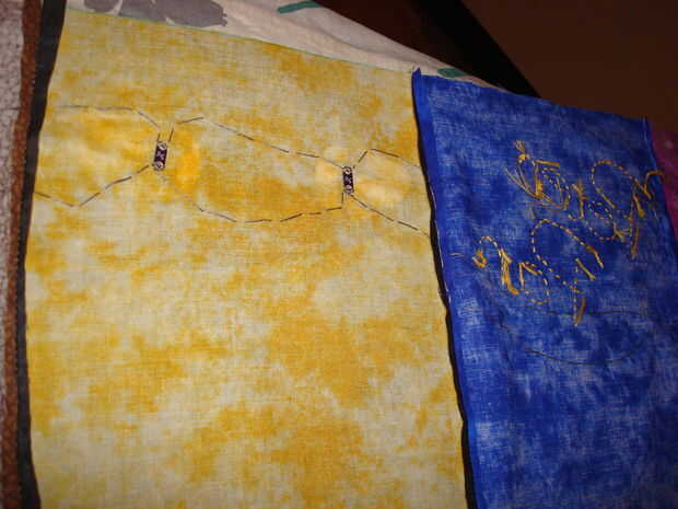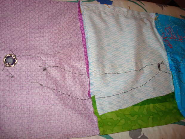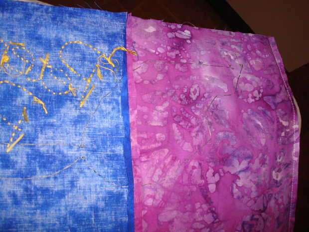 * Nota: mientras se recorren sus puntadas, hacer las puntadas que muestran en la parte delantera de las páginas más pequeñas posible. Para ayudar a ocultar el hilo, puede ocultar algunas puntadas debajo de una aplicación. Cuidadosamente puede coser sólo la capa inferior.