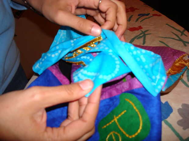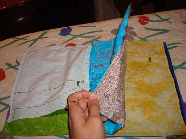 5. hacer la columna vertebral. Por último, corta una tira adicional de la tapa o parte posterior tela para hacer la columna vertebral. Coser la tira a la pieza de cubierta primero. Coser la parte superior e inferior de las páginas para la franja para ocultar los bordes y ocultar cualquier cola de hilo callejeros. Meta el borde restante de la columna vertebral bajo la cubierta trasera y coser la costura final a lo largo de la parte posterior.