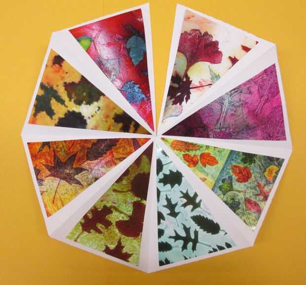 Yo con cuidado cortar las imágenes para encajar en las formas de triángulo de cada página y replegado mi libro