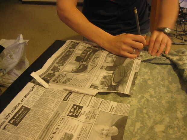 Luego hemos trazado el periódico sobre la tela ACU para obtener un ajuste exacto cercano.