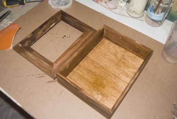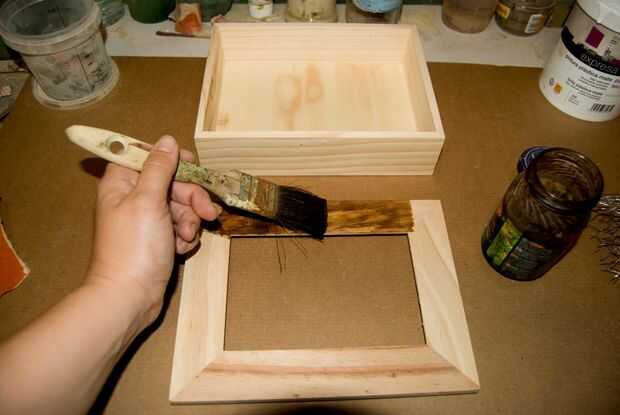 El tinte que utiliza para pintar la primera capa de la madera es nogal (nogaline). Un colorante que viene en polvo, dejando un color más oscuro o más claro dependiendo de la proporción de agua en la mezcla.