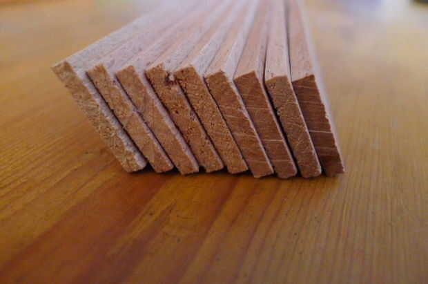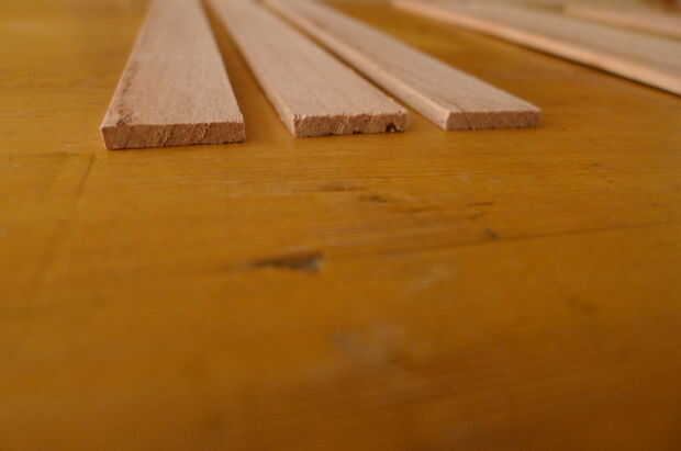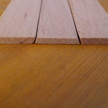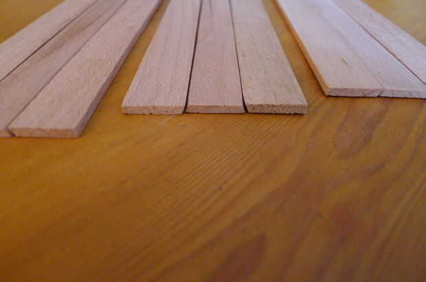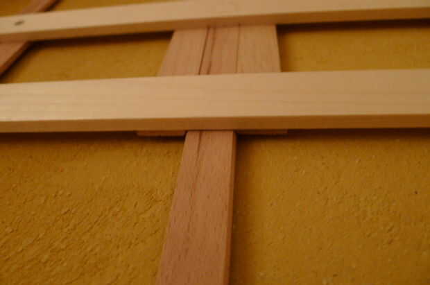 Es importante mencionar que el listón mediano en las dos diapositivas exteriores ha sido lijado para hacerla más fina. Esto es necesario dejar que funcione a lo largo de los dos espaciadores introducidos en el paso 4.