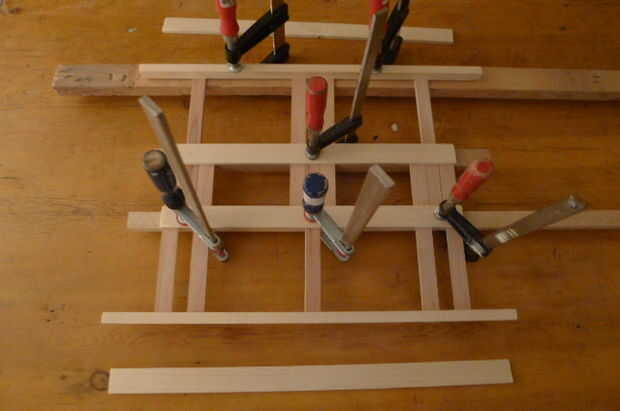 La suspensión del libro puede ser montada con sólo pegamento de carpintero; atornillar o clavar no es necesaria pero puede proporcionar un apoyo adicional. Para completar la suspensión pueden lijar los bordes visibles por razones de estética y seguridad. La suspensión de la pintura es opcional.