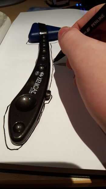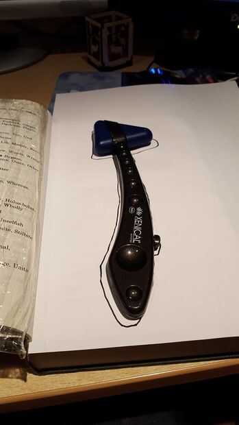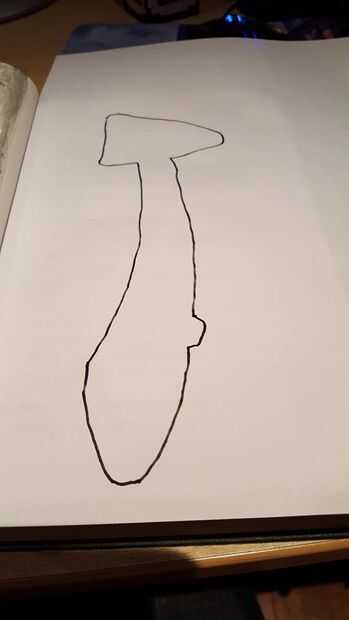La primera tarea es crear un recuadro que es una pulgada (25mm) menor que el borde de las páginas en cada dimensión. Coloque el martillo sobre una página en blanco de papel sobre una página en el libro y dibujar alrededor de él con un marcador. Tomar una foto o escanear esta imagen del martillo. Como en la foto de arriba.