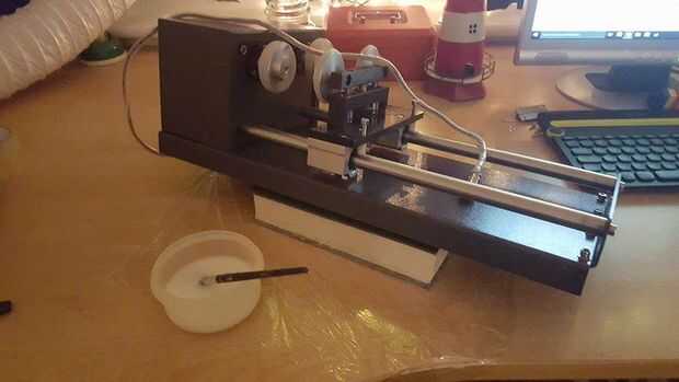 Utilizando esta mezcla y un cepillo de cubrir los lados de las páginas con el libro cerrado con alrededor de 3 o más capas. A continuación coloque un peso varíe en el libro. (Que utiliza un dispositivo rotatorio para el laser ya que es lo que tenia a mano véase el cuadro 2.)
