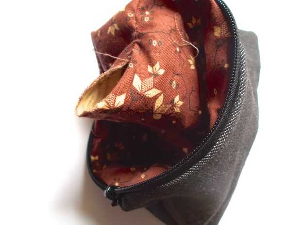 Empuje la bolsa exterior con la tela del forro y coser alrededor de la cremallera para que el forro y el exterior no romperse o atascarse la cremallera.