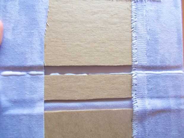 Si usted toma cualquier libro de tapa dura cerca de usted y levante la cubierta frontal, verás un canto leve que se conectan la cubierta delantera y columna vertebral. Esta metiendo delgado de material es causado por los bordes de las dos cubiertas son empujados más cercanos que el espacio proporcionado por la columna vertebral (difícil de explicar, solo abrir y cerrar un libro de tapa dura mientras se visualiza con un vuelo-ojos-vista para obtener una mejor comprensión). Quería replicar esto para mi libro como billetera, aunque carece de las páginas, para darle un toque realista.