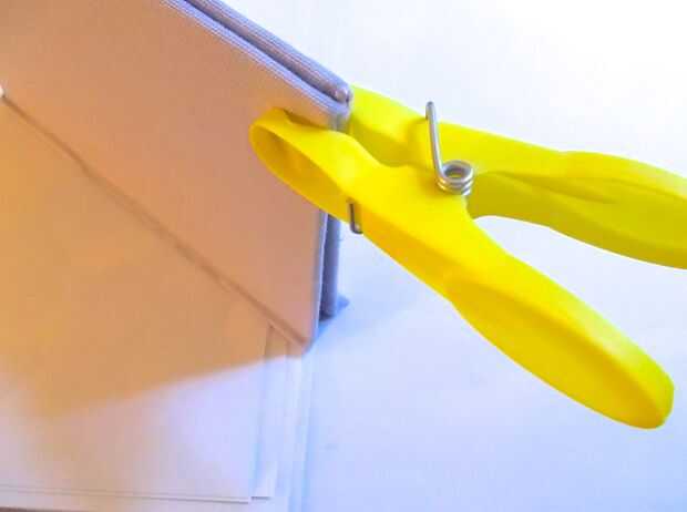 Para ello, aplica una fina línea de pegamento a lo largo de ambos lados largos de la columna vertebral y las cubiertas junto con pinzas de clip. Colocar la cubierta del libro en su columna vertebral para el secado.