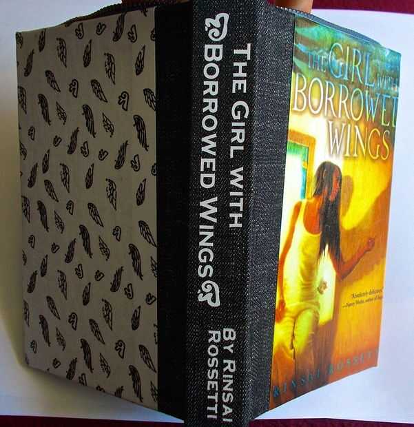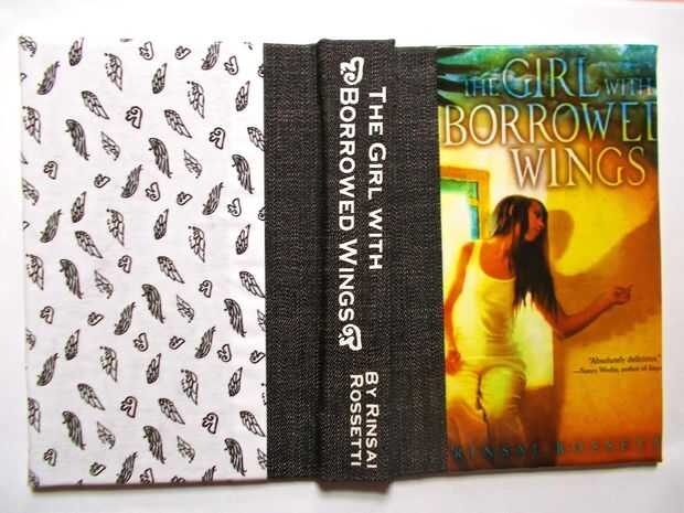 Nota: Si la auxiliar es la imagen de un libro que amo y adoro (como es mi caso: la chica con alas prestadas), también puede utilizar pintura de tela o decoupage o hacer de hierro-en letras para poner el título y el autor a lo largo de la columna vertebral como la mayoría de libros de tapa dura. Lo hice para hacer una más auténtica mira (o al menos como auténticos como este podría conseguir...).