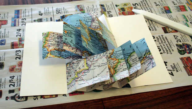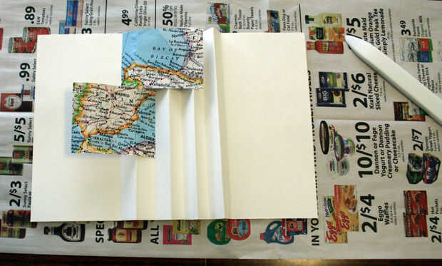 Seguir pegar los bordes de las banderas y sujete los lados de sus dobleces de la montaña, hasta que todos sus parámetros son encolar.