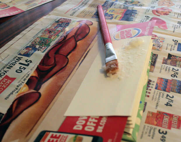 Repita los pasos 13 y 14 para fijar la cubierta posterior del libro. Para asegurar que cola no obtiene en su libro mientras pegado a la última página del acordeón, coloque papel de desecho en su libro mientras cepilla en el pegamento. Cuando haya terminado el pegamento con un cepillo, quite este papel.