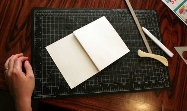 Ejecutar su carpeta de hueso junto con el interior del doblez, presionando contra la plantilla a través del papel.