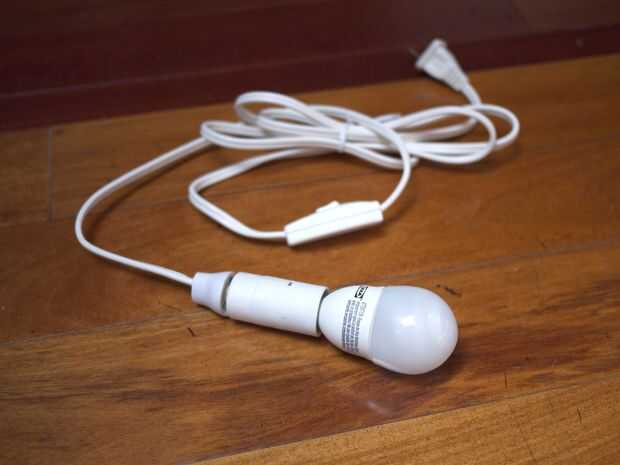 La lámpara lampan de IKEA es genial. Por $5 te dan una pequeña lámpara de plástico y una bombilla CFL de 7W. Todo lo que necesitamos es el cable dentro de la lámpara, sin embargo. Sería grande si era fácil separar el cuerpo de la lámpara y el cable, pero está bastante bien colocado.