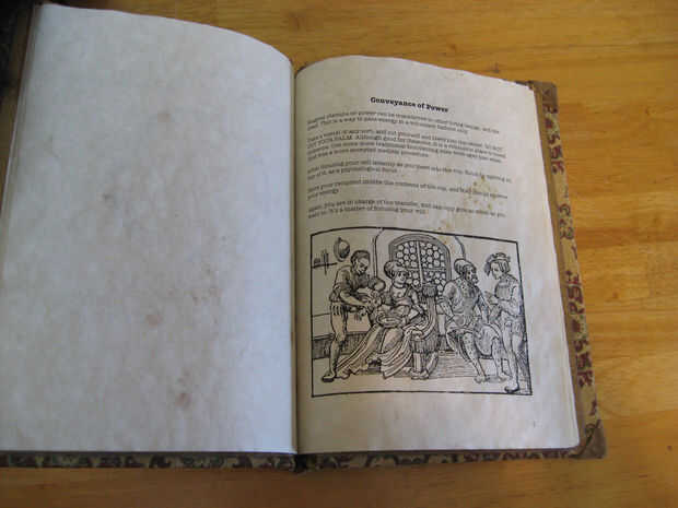 He añadido un signo mayor de tintes bordado en el frente. Se ajusta a la naturaleza del personaje que caiga en la locura es ser capturado por este grimorio.
