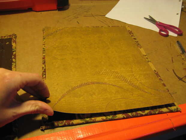 Mida y corte el interior los papeles, luego pegamento abajo. He dejado un poco de un borde del plegado sobre tela que muestra. He utilizado unos papeles bien desde artesanías de Micheal. La man(tm) les escogió para mí, y él tiene muy buen gusto, por lo que salió de gran.