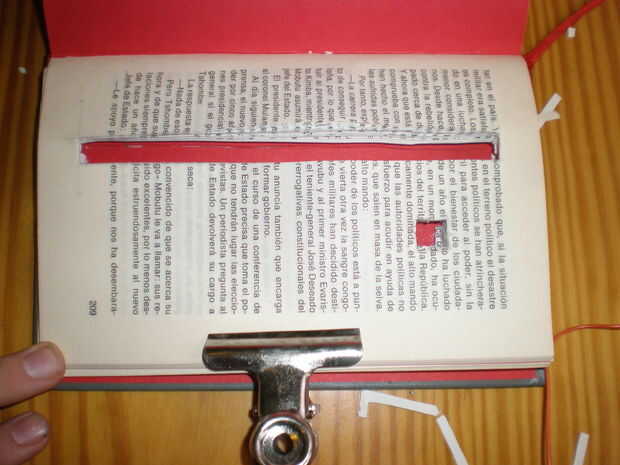 Primero, corte las secciones eran las baterías y el interruptor se utilizará la herramienta de corte. No te olvides de hacer los agujeros a la espina dorsal del libro así como a conectar el led.