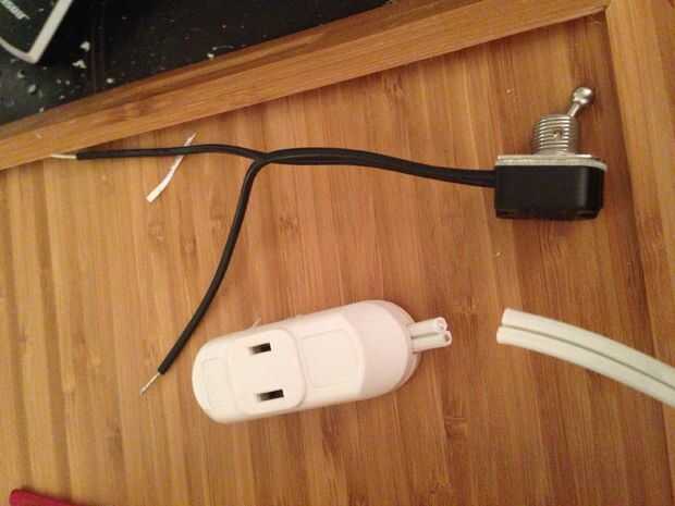 Conecté y había grabado el entrante positivo a uno de los cables del interruptor. No importa que el cable del dos interruptor va a. Al menos no para mi interruptor exacto. Me aseguré de mantener en el 1/2" agujero de cableado por lo que pueden interferir con el zócalo en que estaba a punto de mermelada.