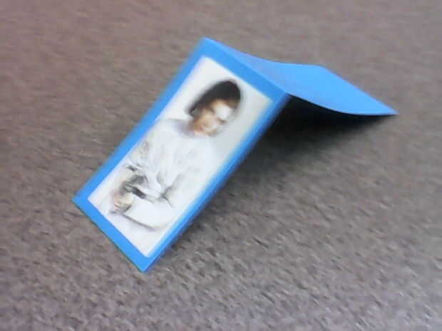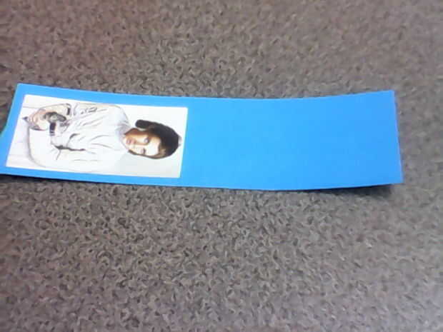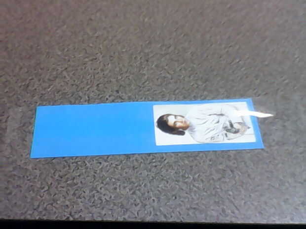 La siguiente parte es simple, se dobla el marcador. Perdón por la foto de que mi mano tembló. Asegúrese de que la Plaza hasta la parte inferior, y cuando haces el doblez asegurarse realmente de que se pliegue. Para asegurarse de que el pliegue es en realidad tomar el lápiz y liso abajo del pliegue. Mientras estás en tome el extremo de la pluma y empuje hacia abajo la cinta alrededor de la imagen en la frontera para asegurarse de tener un sello seguro.