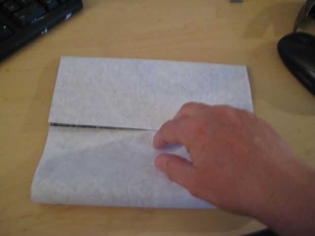En primer lugar, doblar la imagen por la mitad longitudinalmente con la imagen hacia fuera.