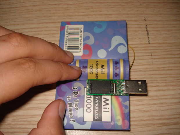 Coloque la unidad cerca de la mitad del libro y medir cuando es exterior y oculto, como se muestra en la segunda y tercera imagen. Necesitará una línea según la marca en el libro: la media de lo rectangular de la unidad cuando está fuera y ocultos.