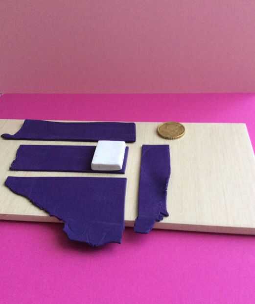 Ahora usted tome otro color de arcilla para cubierta de libro, cualquier color que deseas y rodillo aproximadamente 1 mm de espesor, luego se coloca en la Plaza del pc blanco y recortar la forma de una cubierta de libro. Después de que la forma se corta, rodarla por lo que recorre ambos lados de la arcilla blanca.