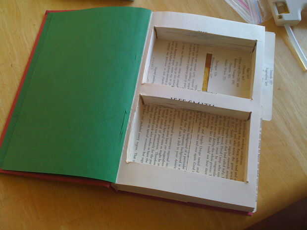 tengo algunas perlas muy agradables, sin embargo, no hay lugar para mantenerlos a salvo.  Luego vi este (http://www.wikihow.com/Make-a-Hollow-Book) sobre la manera de Wiki.  Sí, la idea perfecta.  Fui a la "Librería" en la biblioteca local.  Bib