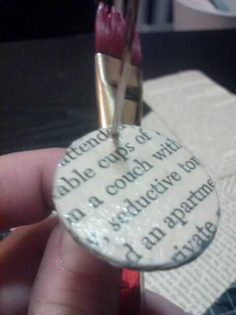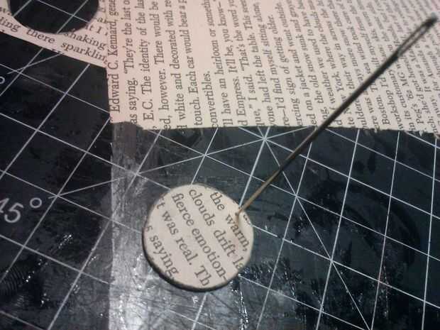 Hágale un agujero de un anillo de salto caber en, luego cubrir con más pegamento, asegurándose de no llenar completamente el agujero con pegamento. Sólo mantuvo la aguja en el agujero y utiliza para sostener el pendiente mientras se aplica el pegamento.