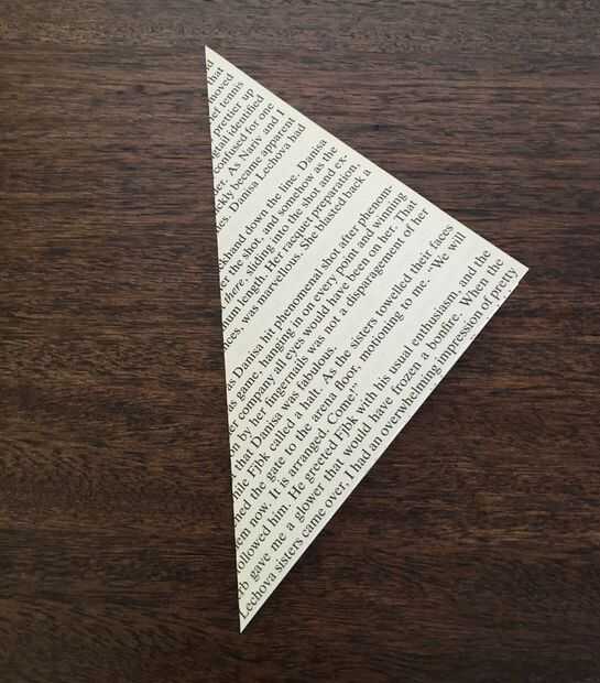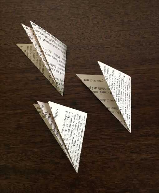 Doblar cada cuadrado en un triángulo y luego otro triángulo y otro triángulo. El resultado final debe ser un tercio del tamaño del primer triángulo. Espero la ayuda de fotos, usted tendrá 3 triángulos doblados.