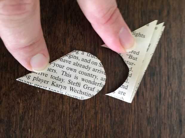 Tomar uno de los triángulos pequeños y mantenga doblado con la punta hacia abajo. Cortar la parte superior abierta para hacer una forma de cúpula (debe ver como un cono de helado). Utilice esta forma como plantilla para cortar otros dos triángulos en conos de helado, asegúrese de que el borde doblado se enfrenta a la misma manera cada vez.