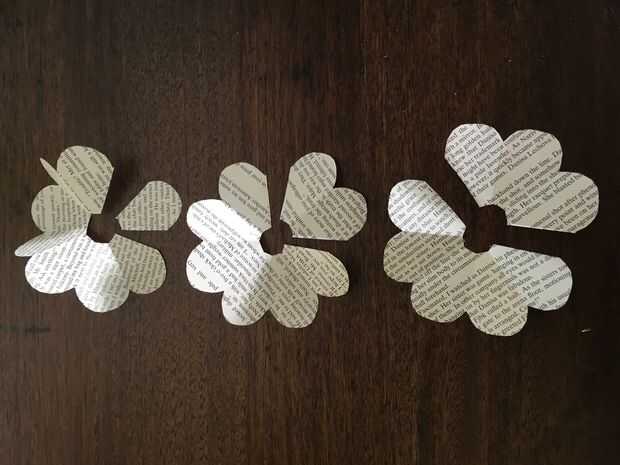 Despliegue cada pieza y cortar como se muestra en las fotos. En conjunto se tienen 6 piezas de pétalo consisten - 1 pétalo, 2 pétalos, 3 pétalos, 5 pétalos, pétalos de 6 y 7 pétalos.