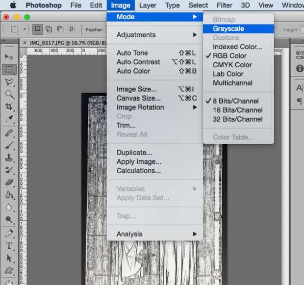 Descartar la información de color. Esto hace que su imagen en escala de grises. Tenga en cuenta que en este punto, no es una verdadera imagen blanco y negro. Debe verse bastante blanco y negro, pero si te fijas bien, notarás que algunas partes son realmente grises diferentes. Vamos a hacer una verdadera imagen blanco y negro en uno de los pasos.