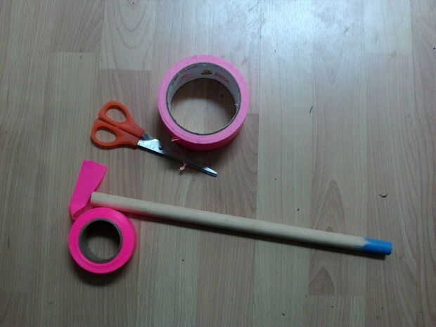 Cinta de topógrafos pero preferiblemente algo más fuerte. (Mina fue de $2. Usted puede conseguir en algún lugar como Ace. No es pegajoso, es sólo para que cosas como empatando en las estacas para indicar algo en el suelo como donde irá una casa. Usted podría también utilizar otras cosas en su lugar.)