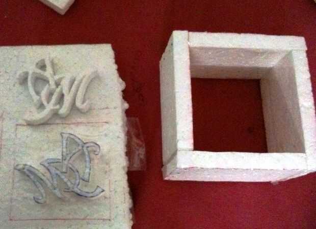 Luego sus cartas con un cortador de hotwire y pegarla en la imagen del espejo. en el fondo del molde.