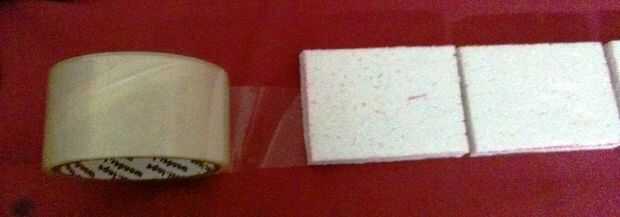 Cubrir un lado con cinta adhesiva transparente (esto es por lo que puede engrasar y también para el retiro fácil... y se puede reutilizar.)
