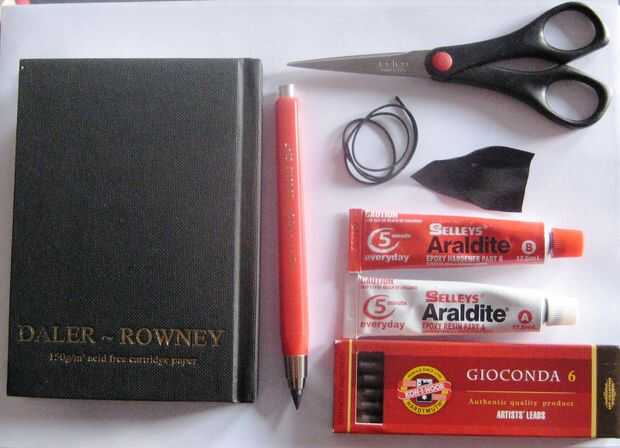personalizada de un divertido libro del bosquejo hecho con cartón y cinta adhesiva.  Mide 4 1/2" de 5 7/8" y tiene 46 páginas dar rienda suelta a tu creatividad.Paso 1: fuentes de Este libro bosquejo poco se puede hacer con cosas colgando alrede