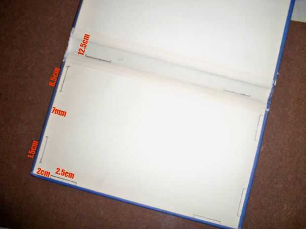 Las medidas 1,5 cm, 2 cm, 8.5 cm y 12,5 cm son tomadas desde el borde exterior del libro.