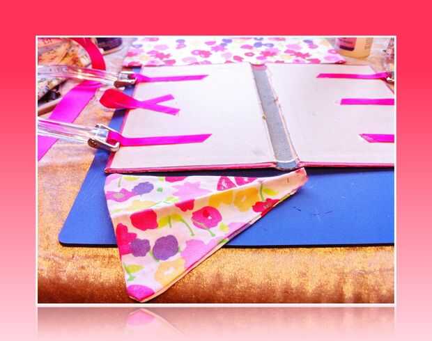 Luego con mucho cuidado coloque los triángulos de la tela de lado a la línea de pegamento en el otro lado y abdomen en la parte inferior de la tela del triángulo en la columna vertebral. Añadir el interior del panel y sujete con abrazaderas de papel.