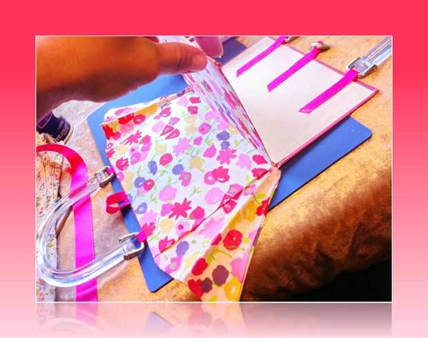 Como se ve en la foto 1 se necesita pegar los lados hacia un lado del libro. (Sugerencia: planchar las partes por la mitad. Asegúrese de que tiene los lados a la mitad con la línea media cosida en el interior. El propósito detrás de la plantilla de corte por la mitad para los lados y luego coser los dos triángulos mitad juntos fue hacer un pliegue que permitiría un limpiador cerca.) He añadido acercamientos de estos pasos.